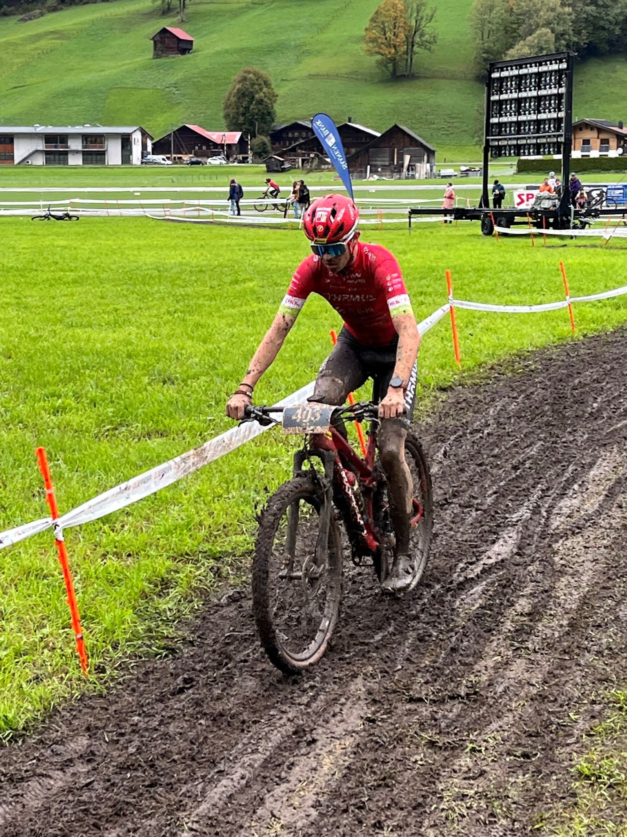 Das Rennen in Huttwil war sehr speziell. Die Wetter Bedingungen waren Schlammig und Nass. Wir hatten vom Team die besten Reifen von Schwalbe bekommen was sehr half. Ich konnte den sehr guten 2.Platz einfahren und die Gesamtwertung für mich entscheiden. Vielen Dank an alle Sponsoren und das Team.